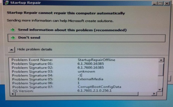 Problem Event Name: StartupRepairOffline