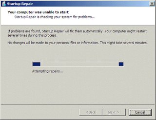 A Startup Repair window opens and automatically scans for startup problems.